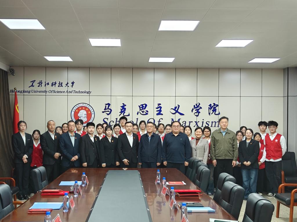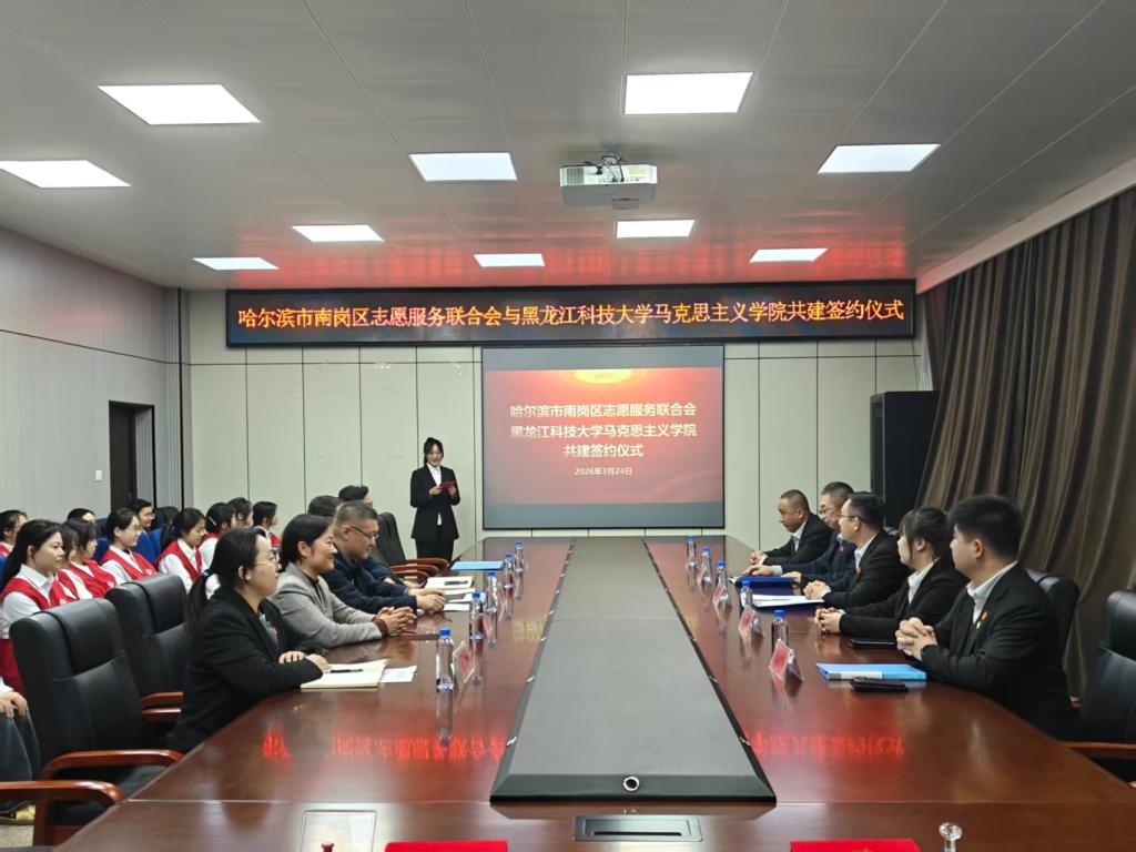 3月24日,黑龙江科技大学马克思主义学院与哈尔滨市南岗区志愿服务联合会签订志愿服务共建协议。哈尔滨市南岗区志愿服务联合会会长滕兆达、秘书长金宇婷、副秘书长孙涛、外联部部长刘志明、外联部副部长吕永达,马克思主义学院党委书记张雪峰、院长冯德军、党委副书记李宁、副院长付明、团委书记宋烨及青锋志愿服务队志愿者共同参加了本次活动。